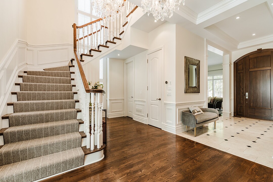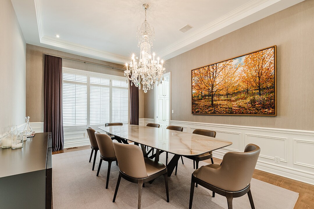 Continue readingMain Floor - Light, Warmth & Flow A dramatic foyer welcomes you into a light-filled, airy living space where soaring ceilings, expansive picture windows, and custom finishes create an atmosphere of understated grandeur. The transitional design ensures effortless flow between the living, dining, and kitchen areas - ideal for both elegant entertaining and relaxed family living.