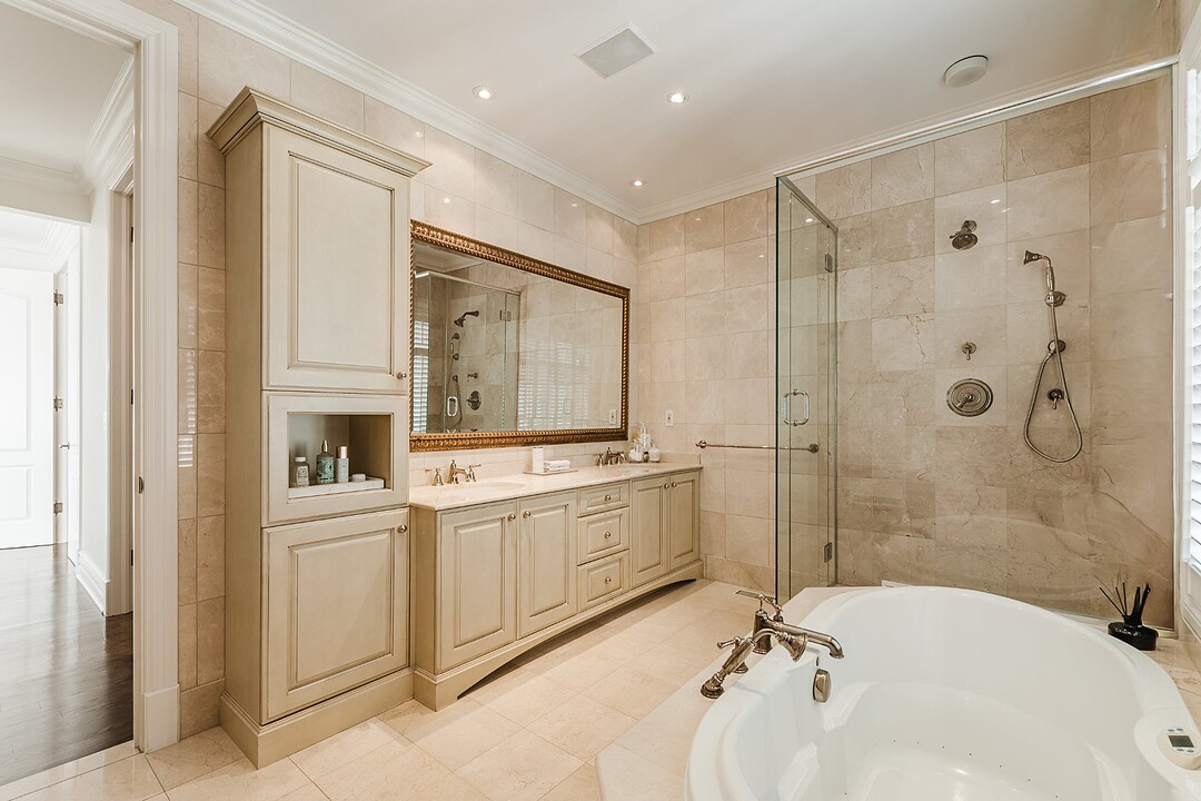 Upper Level - Refined Private Quarters The sumptuous principal suite serves as a private sanctuary, featuring a private terrace, walk-in closet, and a spa-inspired ensuite bathroom with a soaking tub and shower. Two additional spacious bedrooms share a beautifully appointed bathroom, each offering abundant natural light and exceptional comfort.