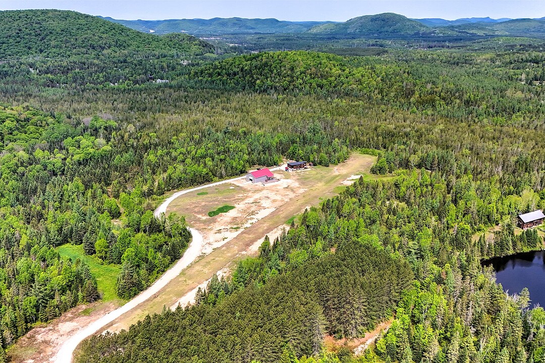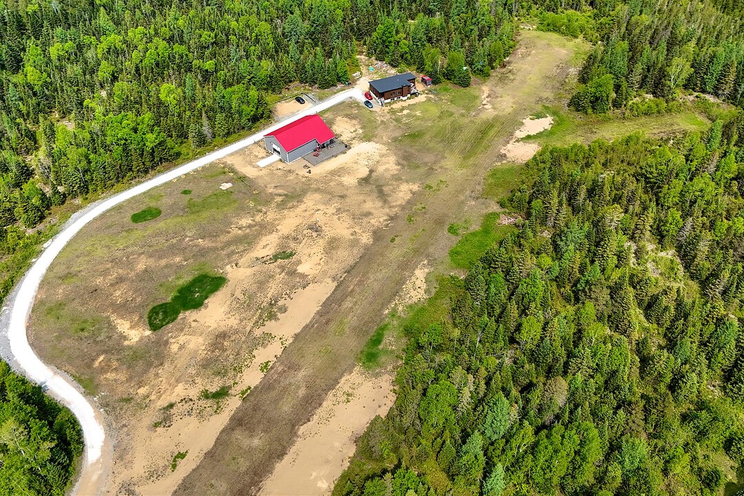 The land allows for potential direct access to Route 117, a major artery through the Laurentians, offering excellent visibility and connectivity. Adding to its unique value, the estate includes a private airstrip with a 1,550-foot grass runway and clearance, ideal for small aircraft. The existing hangar structure houses a charming bistro, an office, and an aircraft shed--perfect for aviation enthusiasts or entrepreneurs seeking a one-of-a-kind destination property.