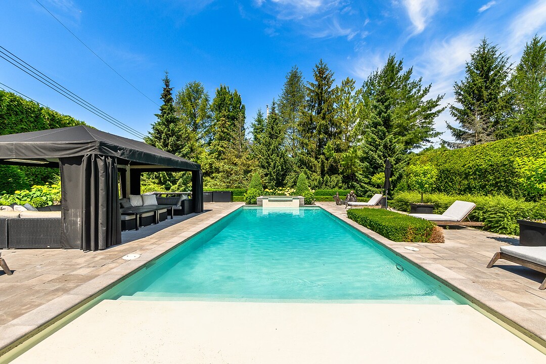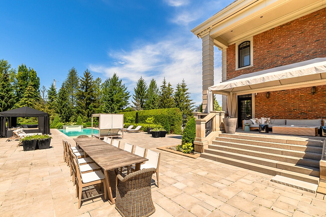 Bienvenue dans cette maison exceptionnelle construite sur mesure offrant un mélange exquis de luxe et de sophistication, avec chaque détail méticuleusement conçu à la perfection. Superbe hall d'entrée avec plafonds de 18 pieds exposant la mezzanine impeccable menant à 5 chambres à coucher, toutes avec sdb attenantes, planchers en chêne blanc, chambre des maitres exquise avec walk-in et salle de bains à lui et elle. Le rez-de-chaussée offre un salon et une salle à manger intérieur/extérieur exquis, avec une cuisine ultramoderne menant à la cour superbement paysagée offrant intimité et piscine d'eau salée. Garage pour 6 voitures. Voir addenda.