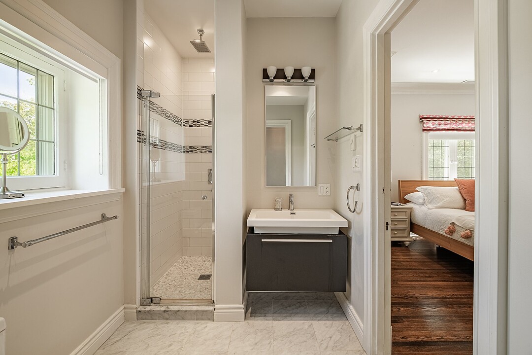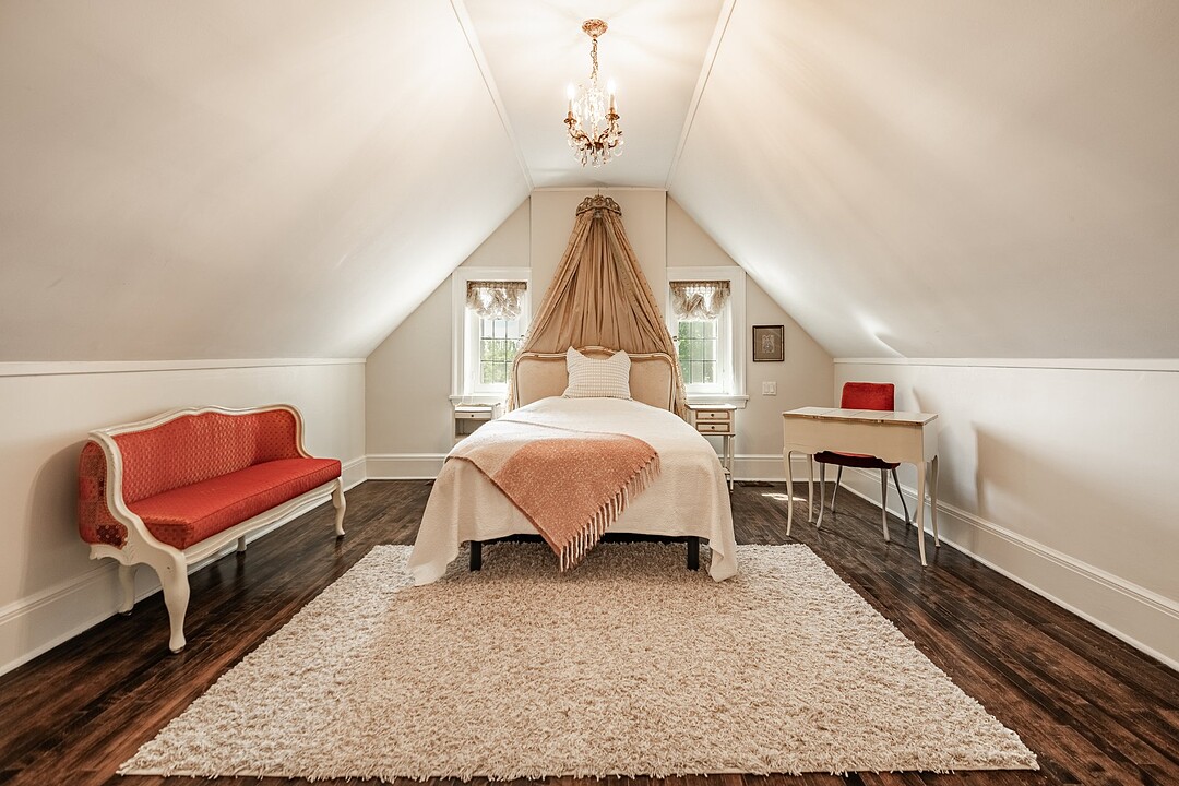 Le troisième étage offre deux autres spacieuses et lumineuses chambres et une salle de bain complète, ce qui en fait un espace idéal pour les enfants plus âgés, les invités ou un espace bureau supplémentaire. Les parquets en bois massif d'origine et les hauts plafonds rehaussent le caractère élégant de la maison.